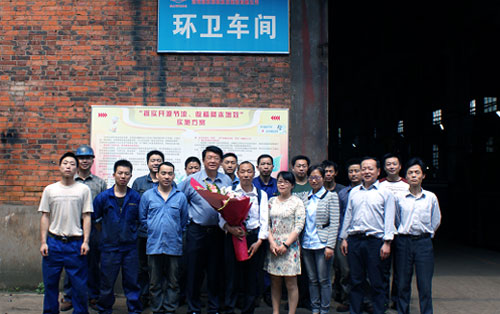 公司(si)董事長(zhang)劉年紅(hong)率公司(si)高管團(tuan)隊及部(bu)分員工(gong)迎接并(bing)留影。
